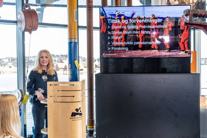 Den nye HMS-meldingen ble lagt fram på Oljemuseet fredag 6. april. Statsråd Anniken Hauglie ba Ptil om å reagere raskt og tydelig når det er nødvendig.